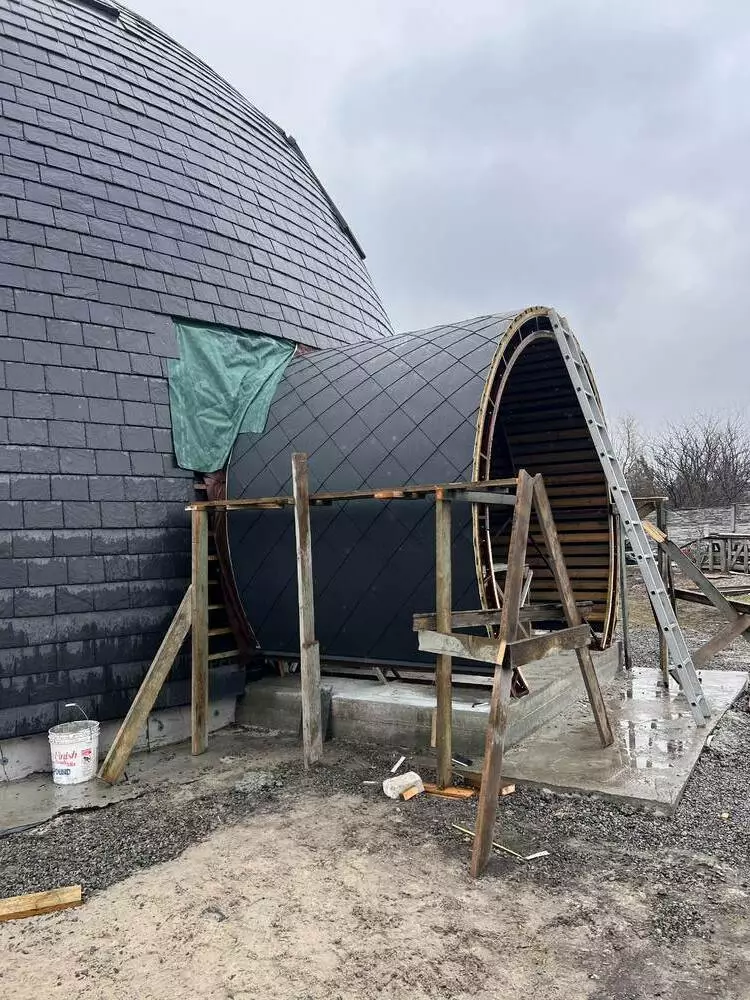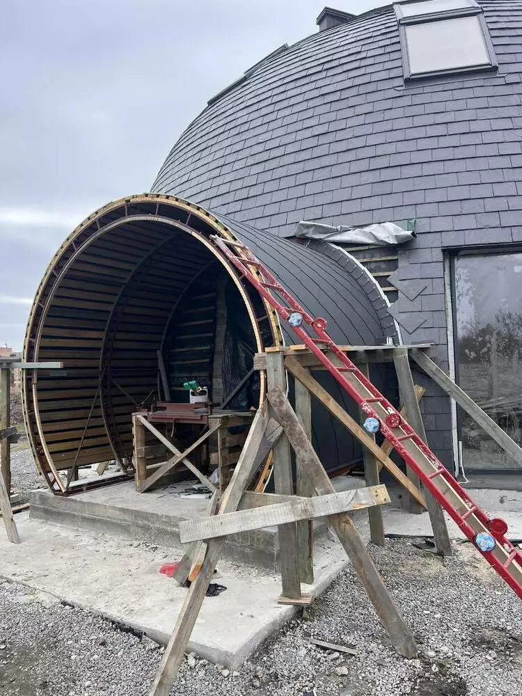 Будівництво та покрівля круглих будинків,радіальних прибудов,покрівл шашкою,обьємною шашкою