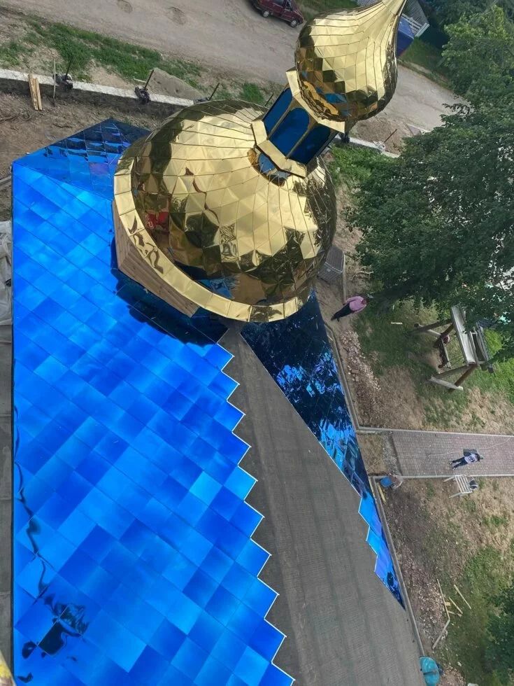 Виконуємо роботи по покрівлі дахів храмів та будівель лускою або фальцем. Можливе виготовлення куполів будь-яких форм та розмірів.