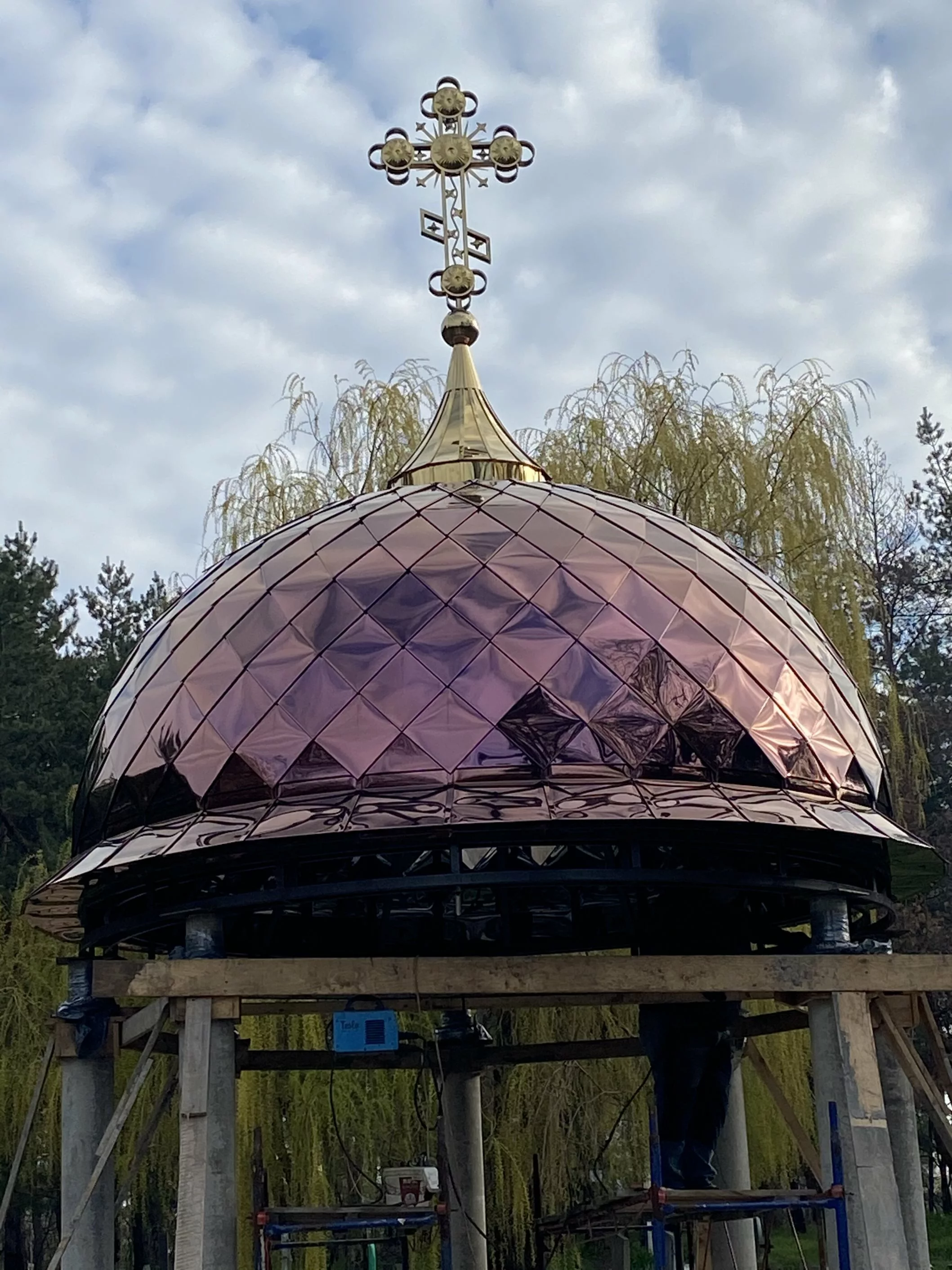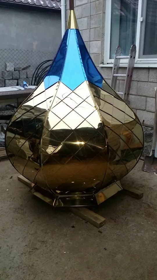 Церковный купол с покрытием нитрид титана имеет неповторимый внешний вид и разработан по собственному проекту Мастерской церковных куполов.