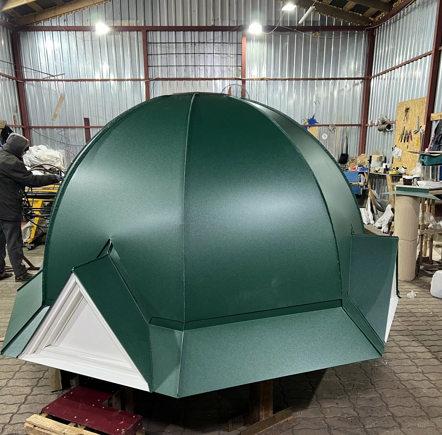 - Металлической металлоконструкции с антикоррозийным покрытием. Проектируется и рассчитывается согласно строительных норм и правил, с учетом географического положения региона, где будет установлен купол.
