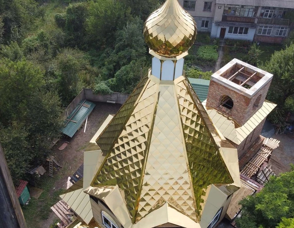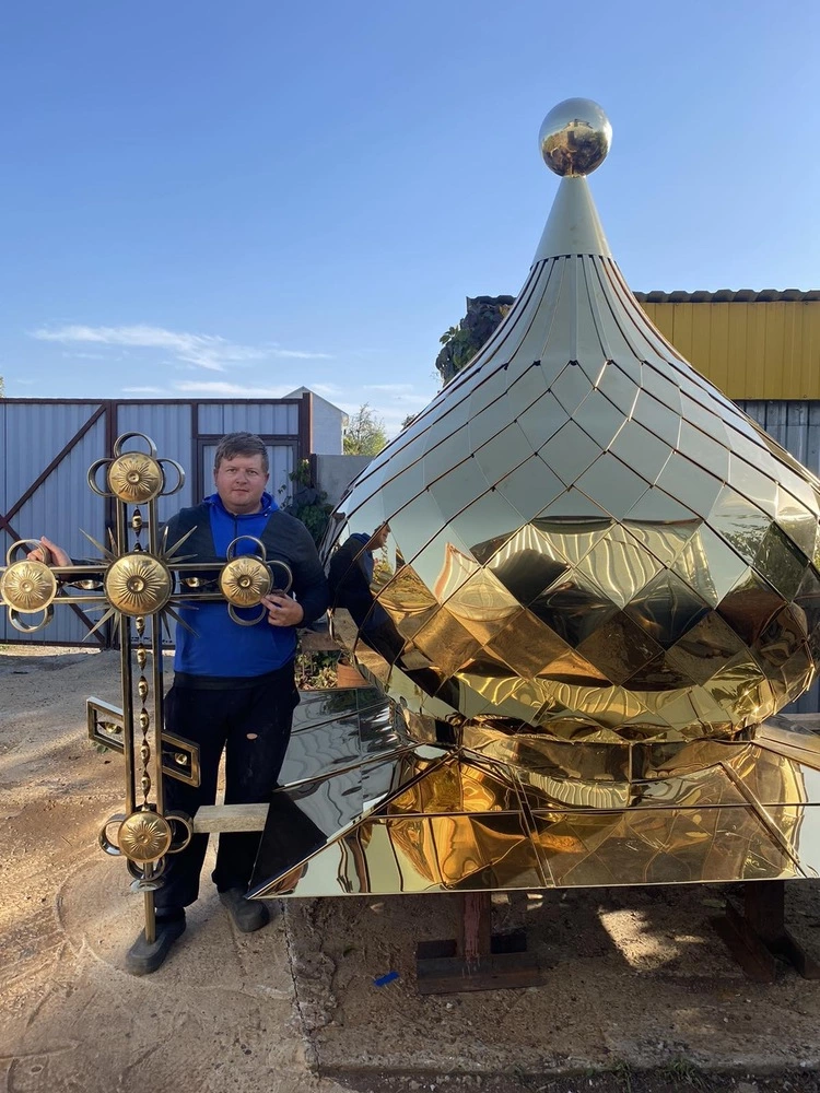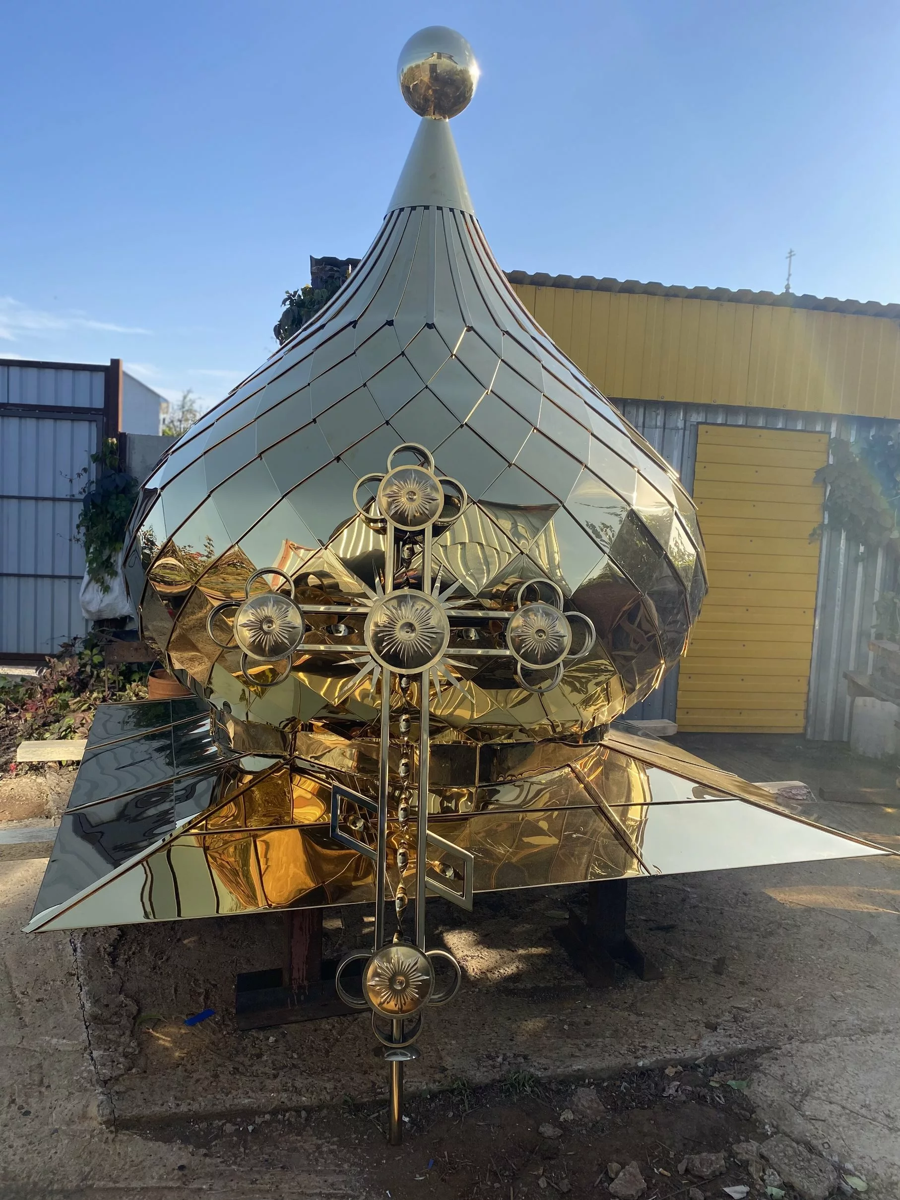 Церковный купол с покрытием нитрид титана имеет неповторимый внешний вид и разработан по собственному проекту Мастерской церковных куполов.